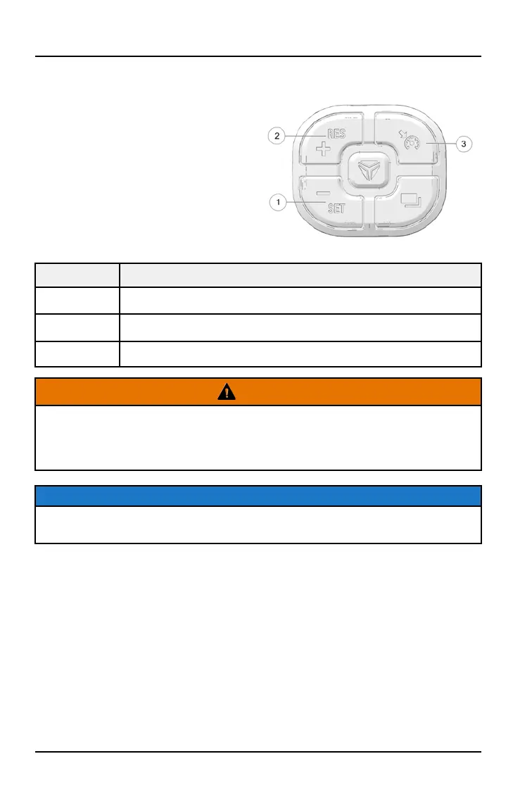 • The cruise control will not resume a pre-set speed if the resulting acceleration