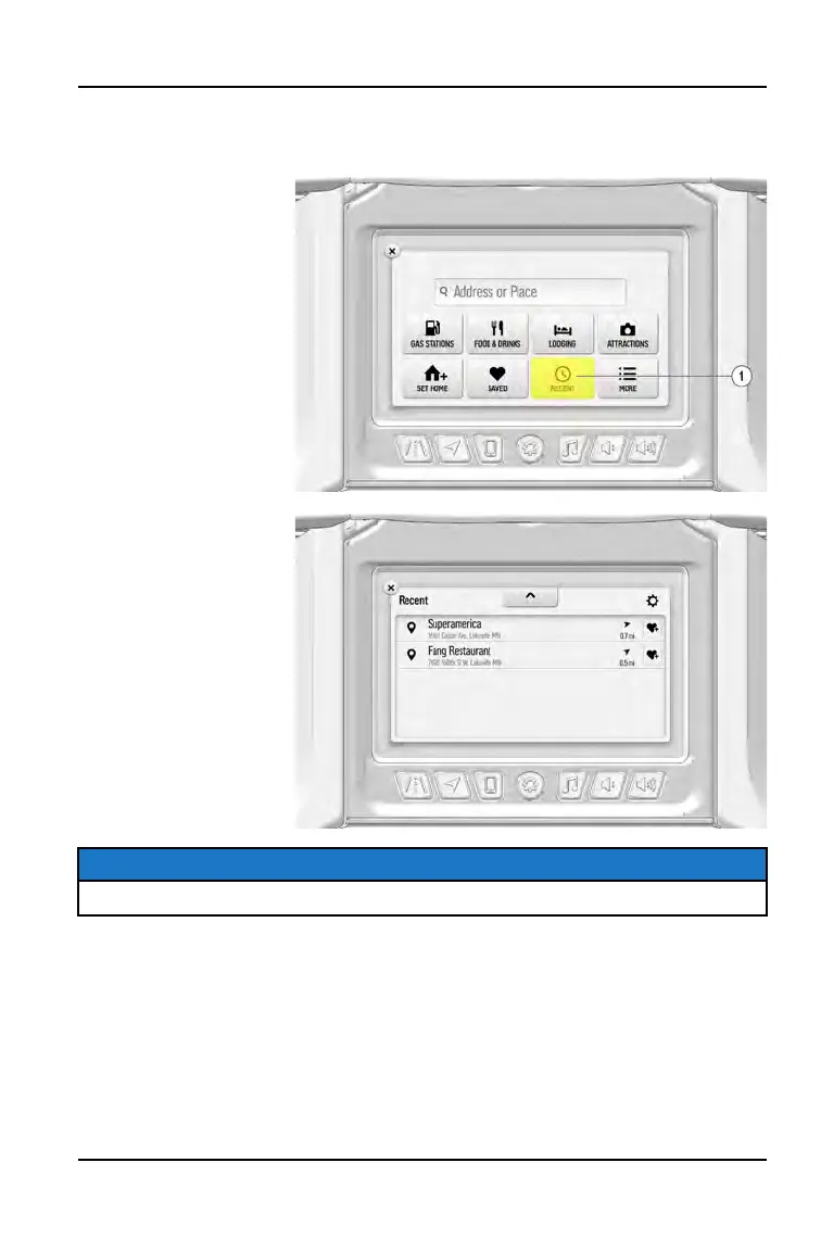 The Recent tab displays a list of previously routed destinations.