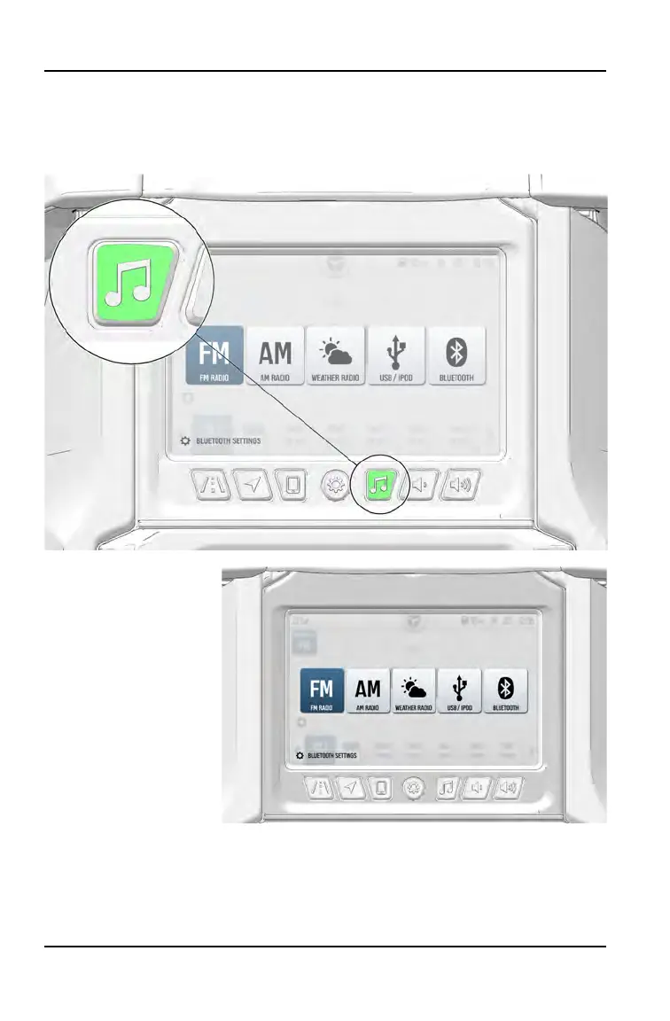 The Audio Screen utilizes the Slingshot’s radio, Bluetooth®, and USB port to