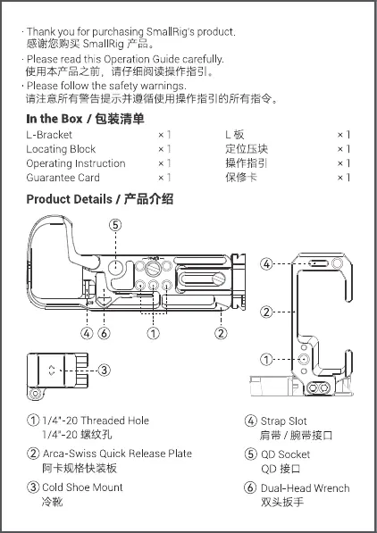 Bekijk gratis de handleiding van SmallRig 4523, stel vragen en lees de antwoorden op veelvoorkomende problemen, of gebruik onze assistent om sneller informatie in de handleiding te vinden of uitleg te krijgen over specifieke functies.