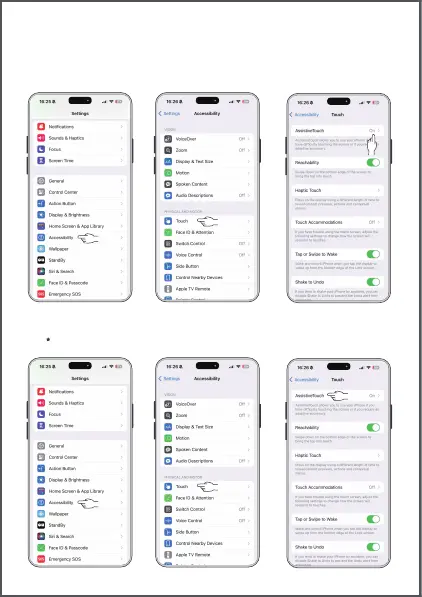 (2) Go to Apple “Settings” → “Accessibility” → “Touch” →“AssistiveTouch” →