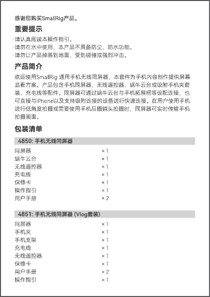 Bekijk gratis de handleiding van SmallRig 4850, stel vragen en lees de antwoorden op veelvoorkomende problemen, of gebruik onze assistent om sneller informatie in de handleiding te vinden of uitleg te krijgen over specifieke functies.