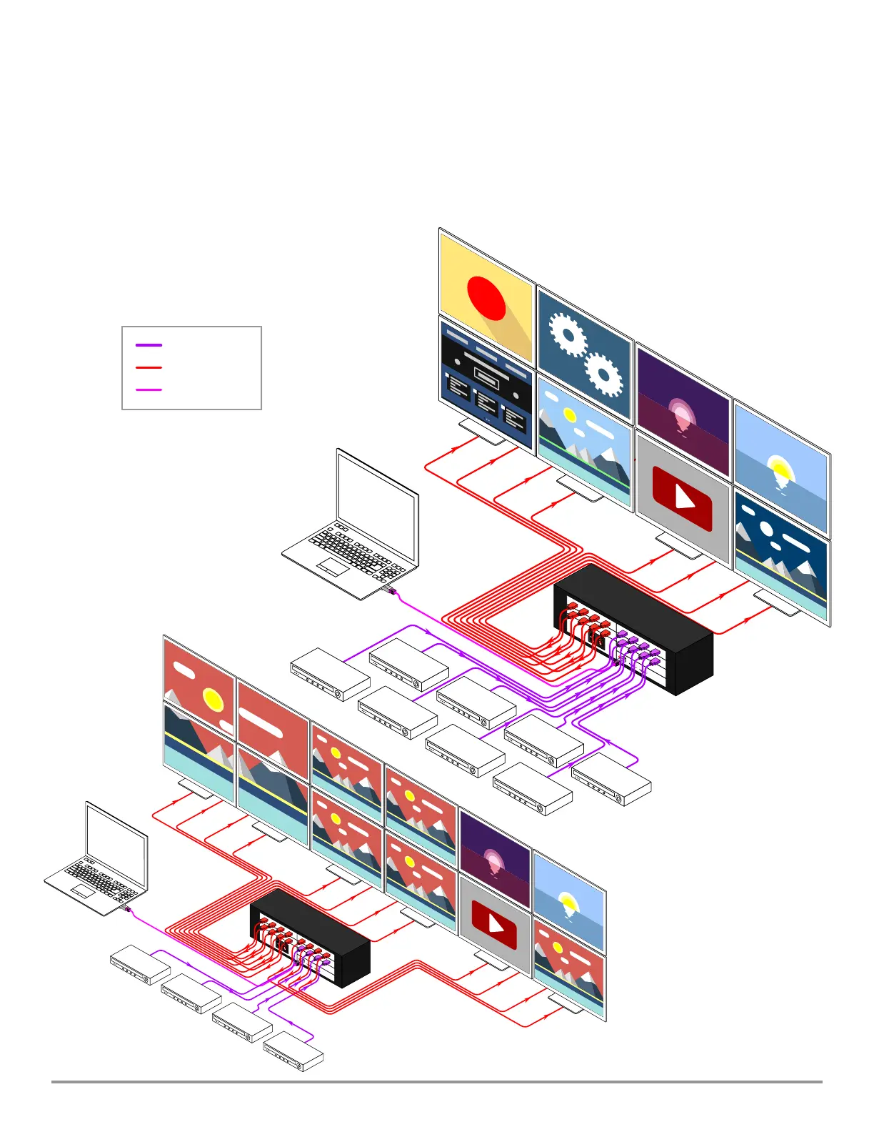 2. Connect displays to the MXwall LT V2 and power on the displays.