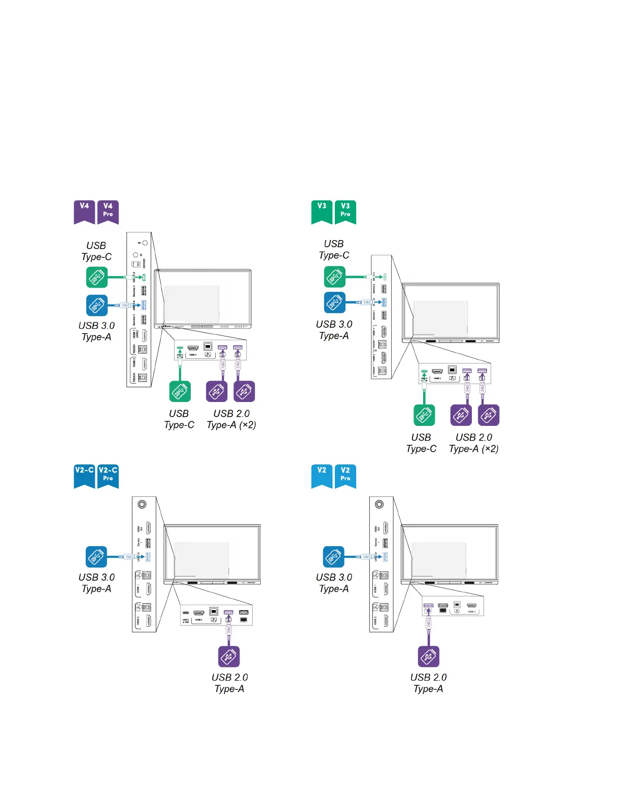 The display includes the following USB receptacles. You can connect USB drives, peripherals (such as