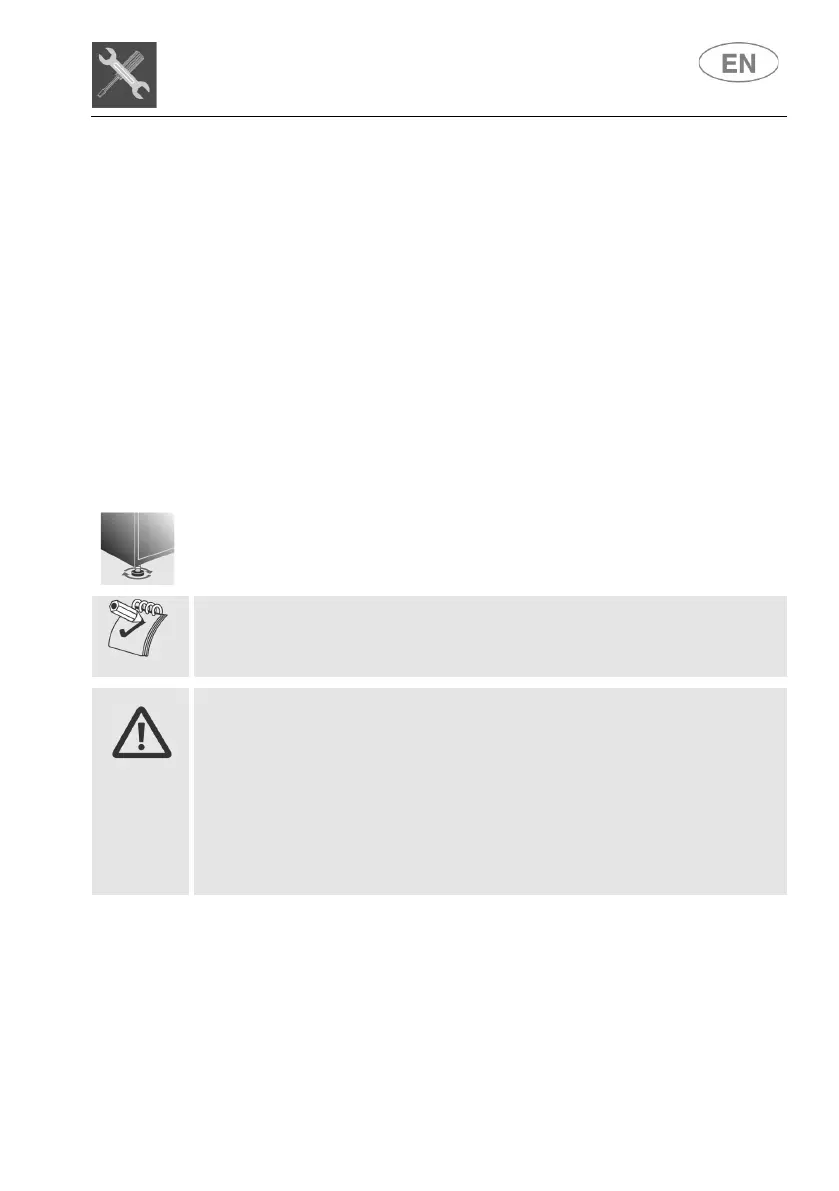 Level the appliance on the floor using its adjustable feet. This operation is