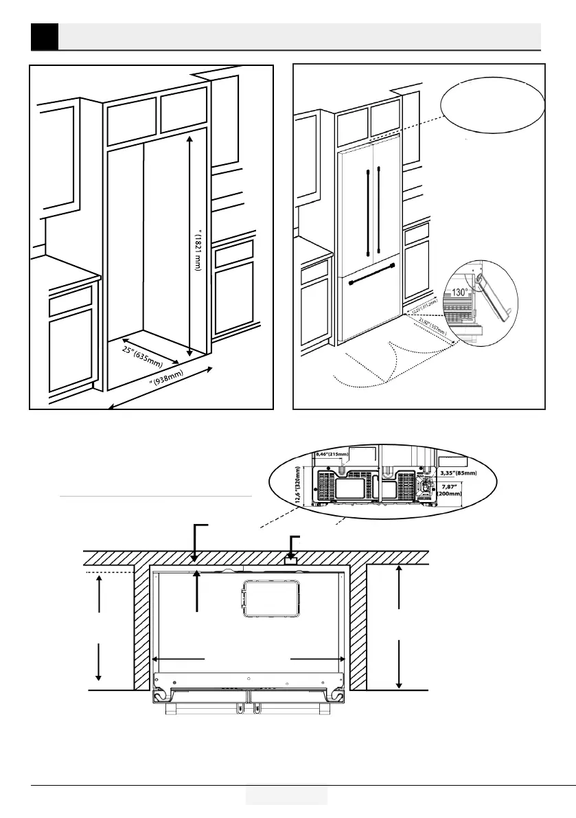 Allow 1 3/8’’ (35 mm) mm. clearance at