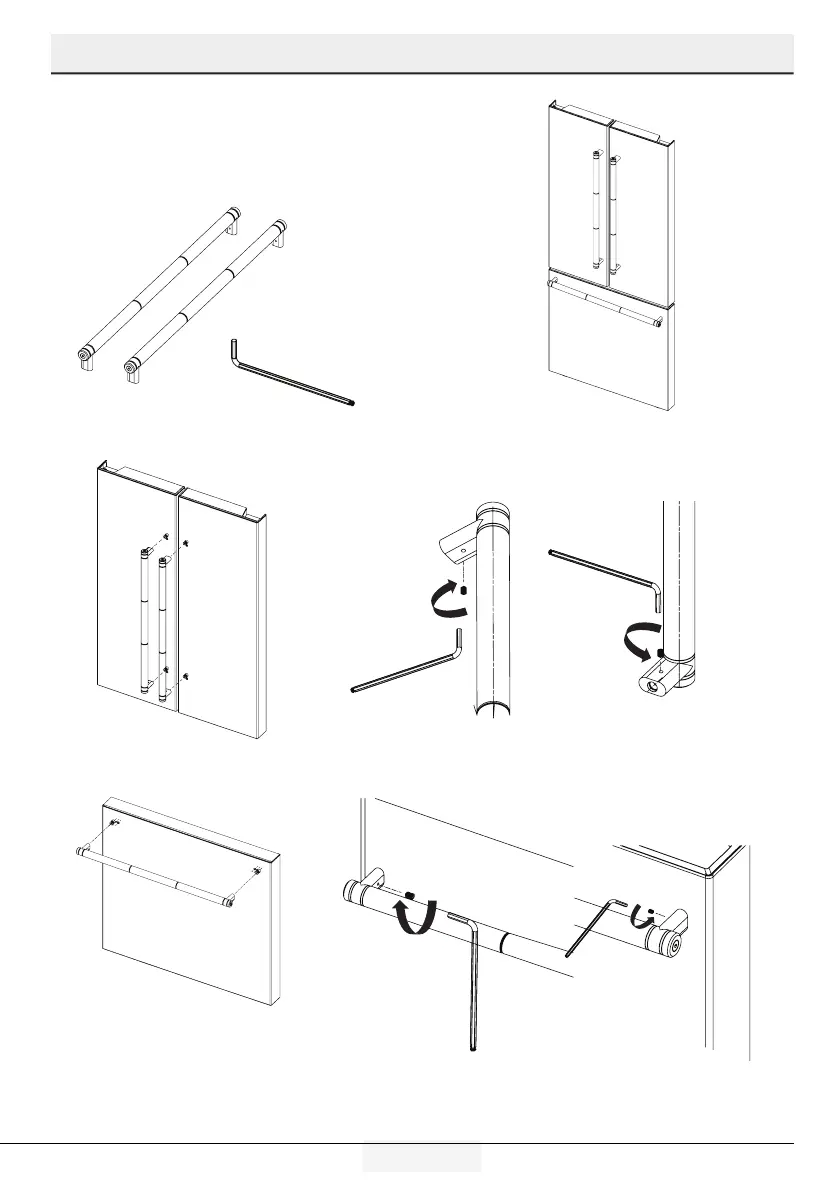 1. Position the drawer handles over the handle mounts and tighten the set screw on the left and right of the handle.