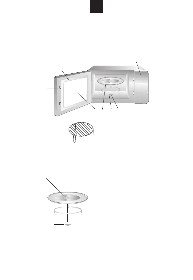 a. Plaats het glazen plateau nooit