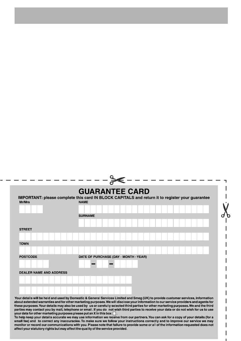 • Appliances purchased as graded or second hand from non-approved Smeg retailer will not