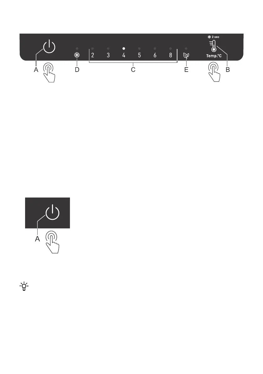 To set the appliance temperature or activate the Eco function, press the B key successively. The