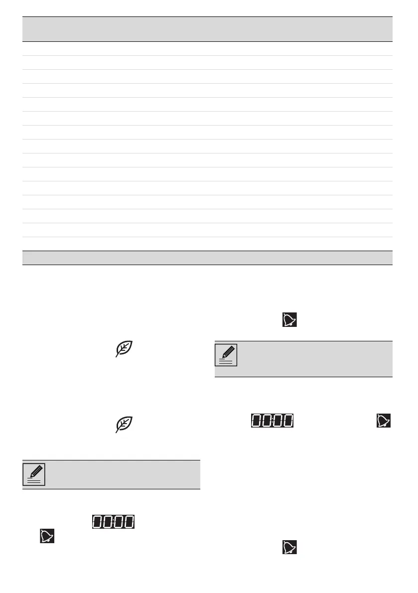 The times indicated in the table do not include preheating times and are provided only as a guide.