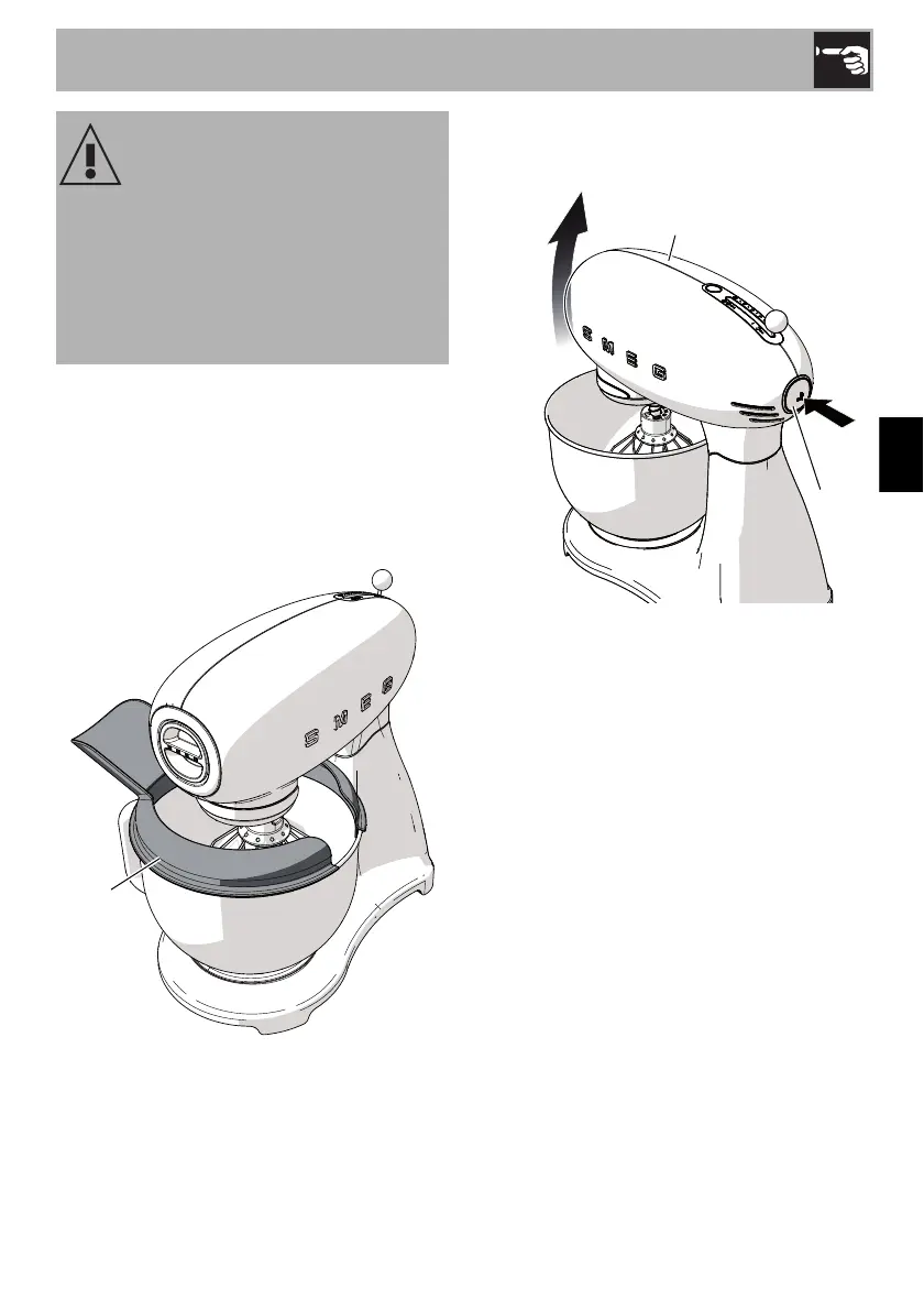 • Schakel de keukenmachine niet in als het