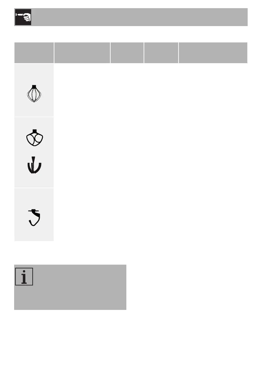Tabel met aanbevolen opzetstukken, geadviseerde snelheid en maximaal volume