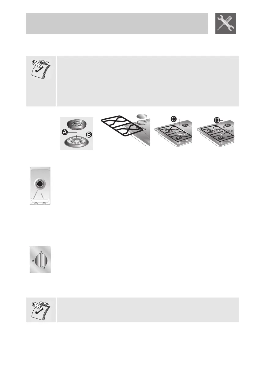burner by a rib. Setting corresponds to the elongated part of the knob or