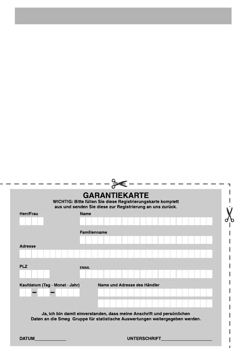 Weitergehende Ansprüche und Rechte werden vom Käufer gegenüber Smeg nicht erworben.