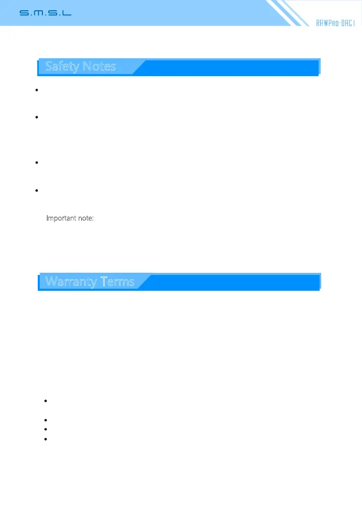5.Contact your S.M.S.L Audio reseller for a return or replacement.