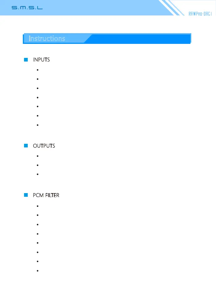 Bekijk gratis de handleiding van S.M.S.L RAW Pro-DAC1, stel vragen en lees de antwoorden op veelvoorkomende problemen, of gebruik onze assistent om sneller informatie in de handleiding te vinden of uitleg te krijgen over specifieke functies.