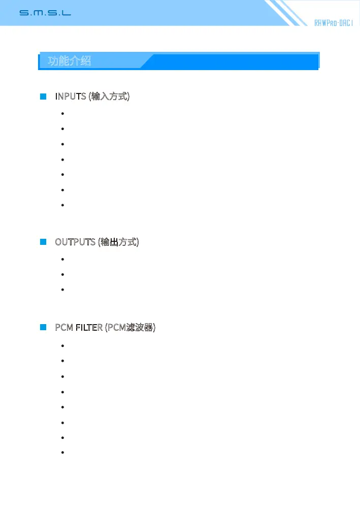 Bekijk gratis de handleiding van S.M.S.L RAW Pro-DAC1, stel vragen en lees de antwoorden op veelvoorkomende problemen, of gebruik onze assistent om sneller informatie in de handleiding te vinden of uitleg te krijgen over specifieke functies.