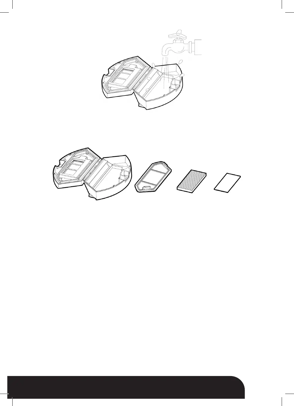 Lave la caja de polvo y el preltro / Wash the dust box and pre- lter