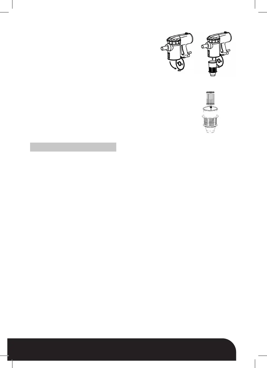 NOTE: NEVER USE THE VACUUM WITHOUT THE FILTER.