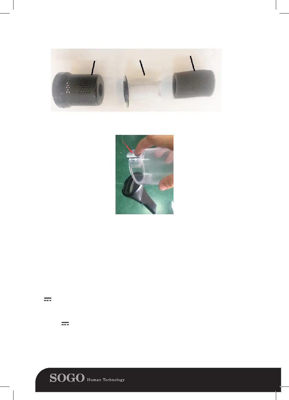 Put the lter into dust container. Assemble the dust bin to the motor unit following up the opposite