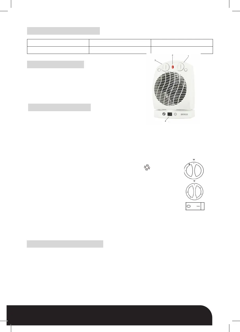 Note: Fan heater has in-built safety device that will turn it o in case of accidental overheating (for