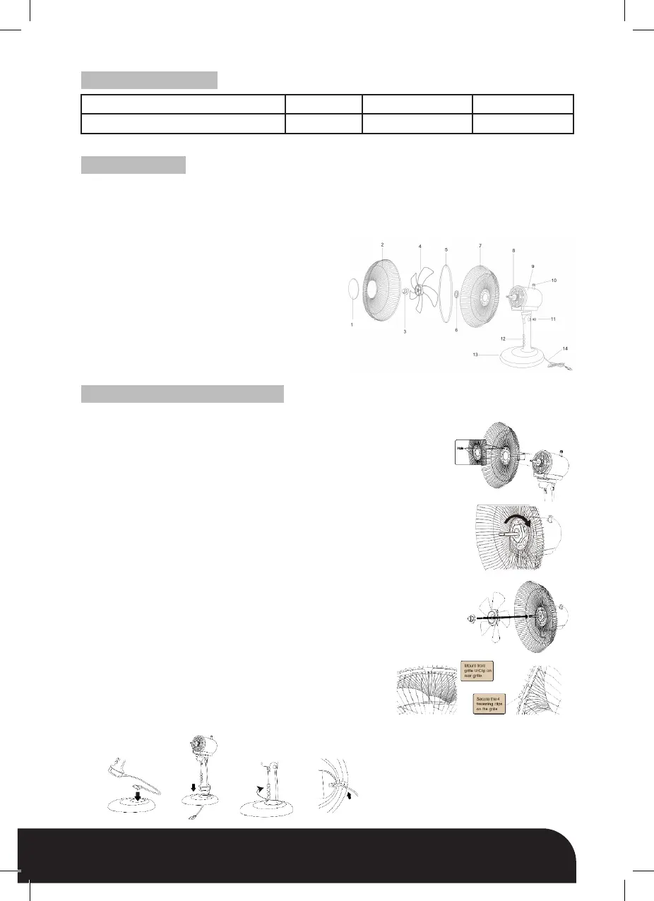 • Set the rear grille (#7) to the motor housing (#9) with the handle facing up.