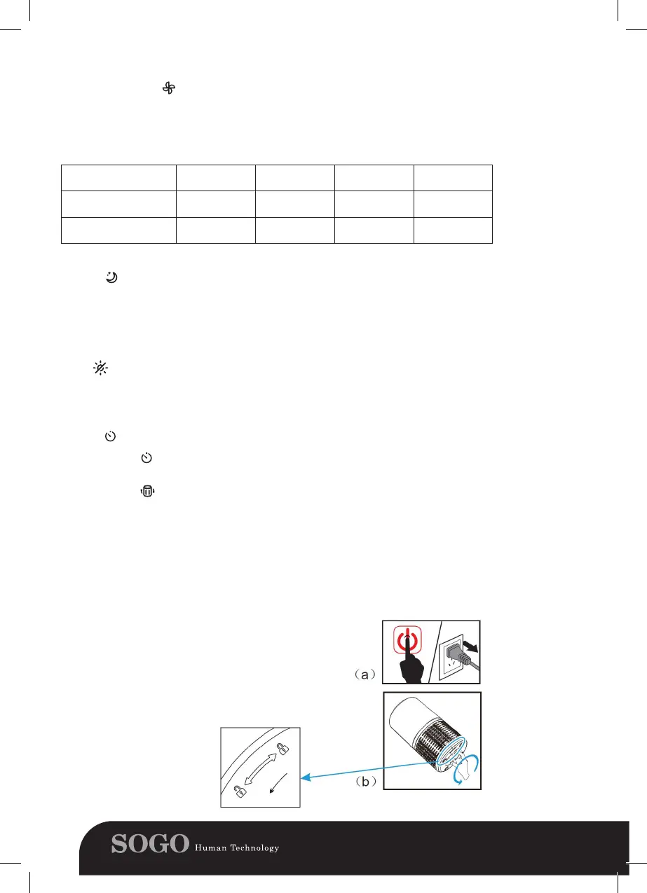 Note: Pressing or unplugging the air purier will cancel the timer.