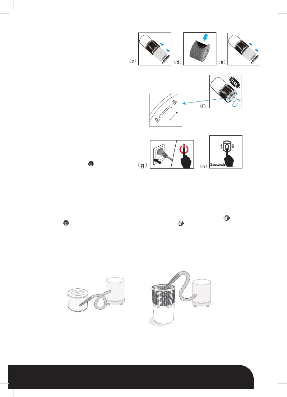 secondi, l’icona si accende. Tenere premuto di nuovo il pulsante per 3 secondi, la spia del ltro si