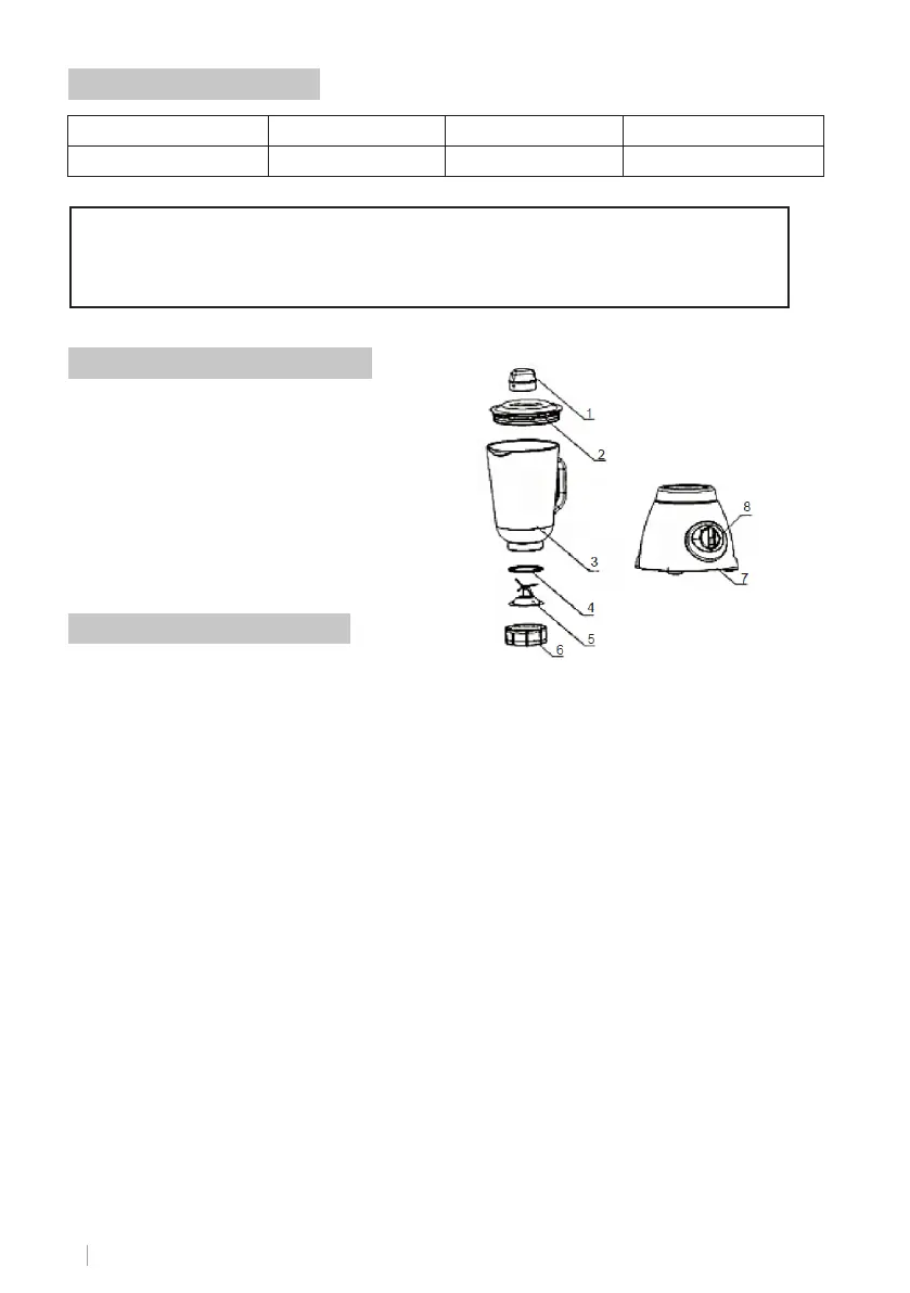1. Reinigen Sie den Messbecher, den Deckel und den Behälter (außer dem Hauptteil) usw. vor der