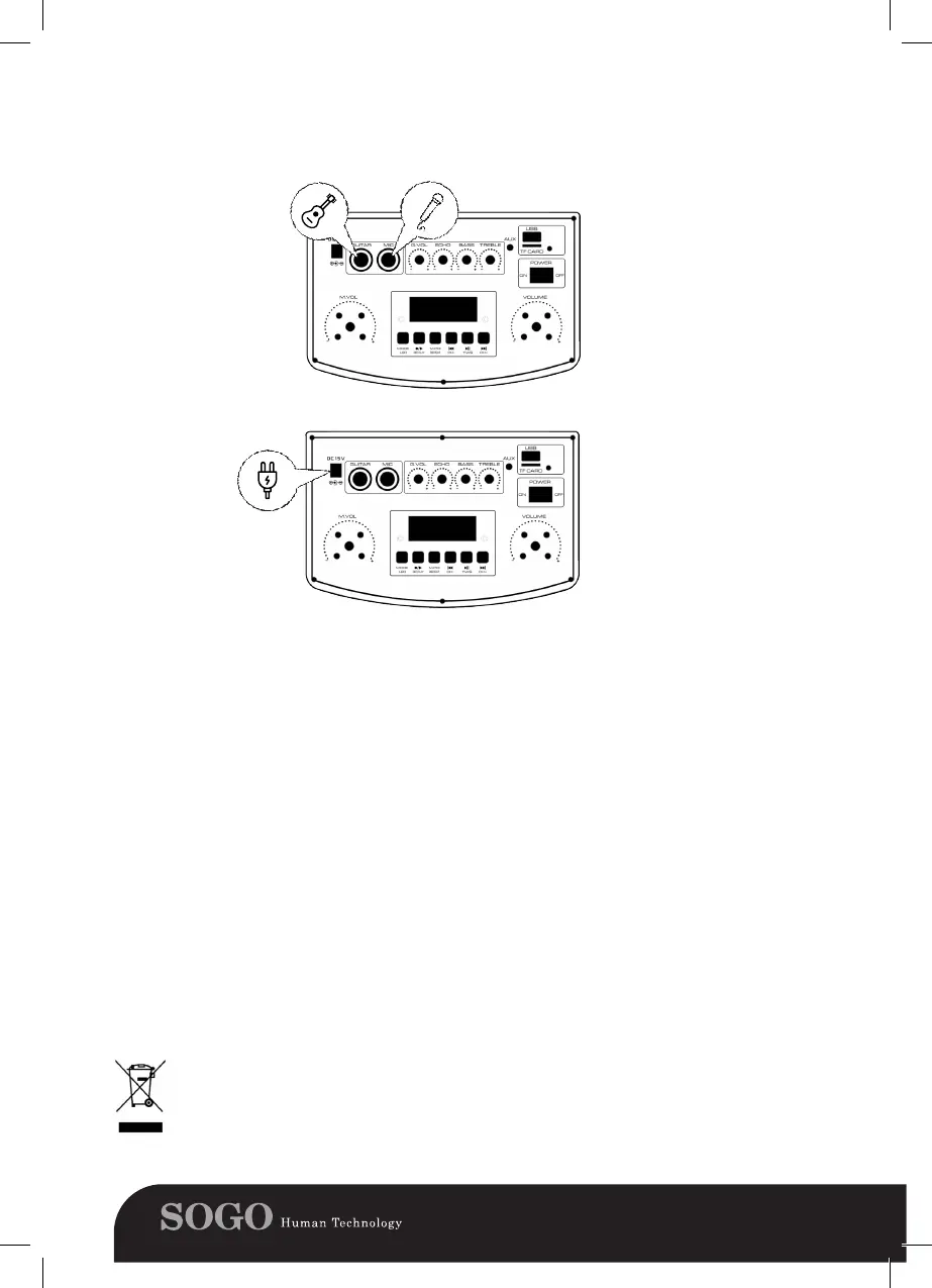 Con la ayuda de la entrada de guitarra disponible, puede conectar la guitarra y mezclar el sonido de