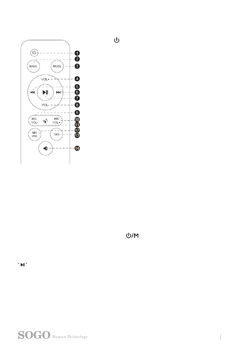 13- TWS: S kratkim pritiskom na ta gumb aktivirate ali deaktivirate funkcijo TWS. Ko je funkcija TWS