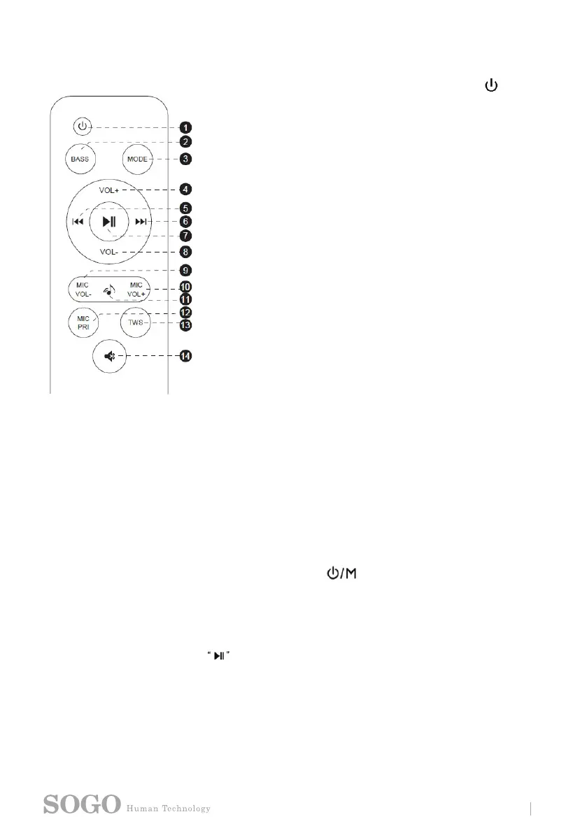 13- TWS: Pulse brevemente este botón para activar o desactivar la función TWS. Cuando la función