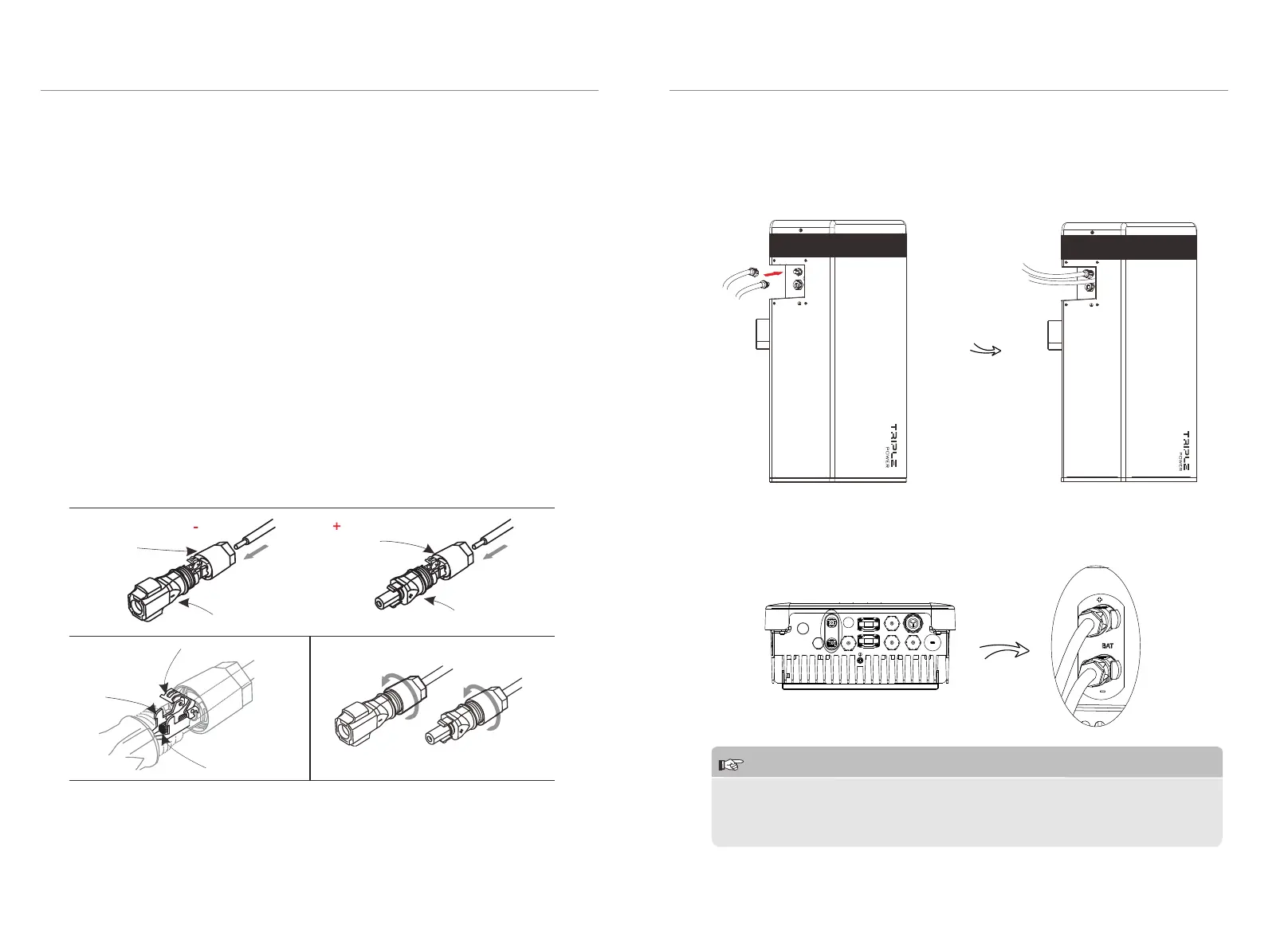 2. Keep the Inverter off. Connect the other end of power cables (+,-) to the BAT