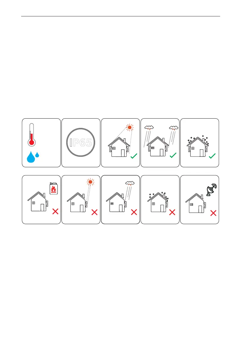Rain exposureNear combustibles Direct sunlight Snow lay up Near antenna