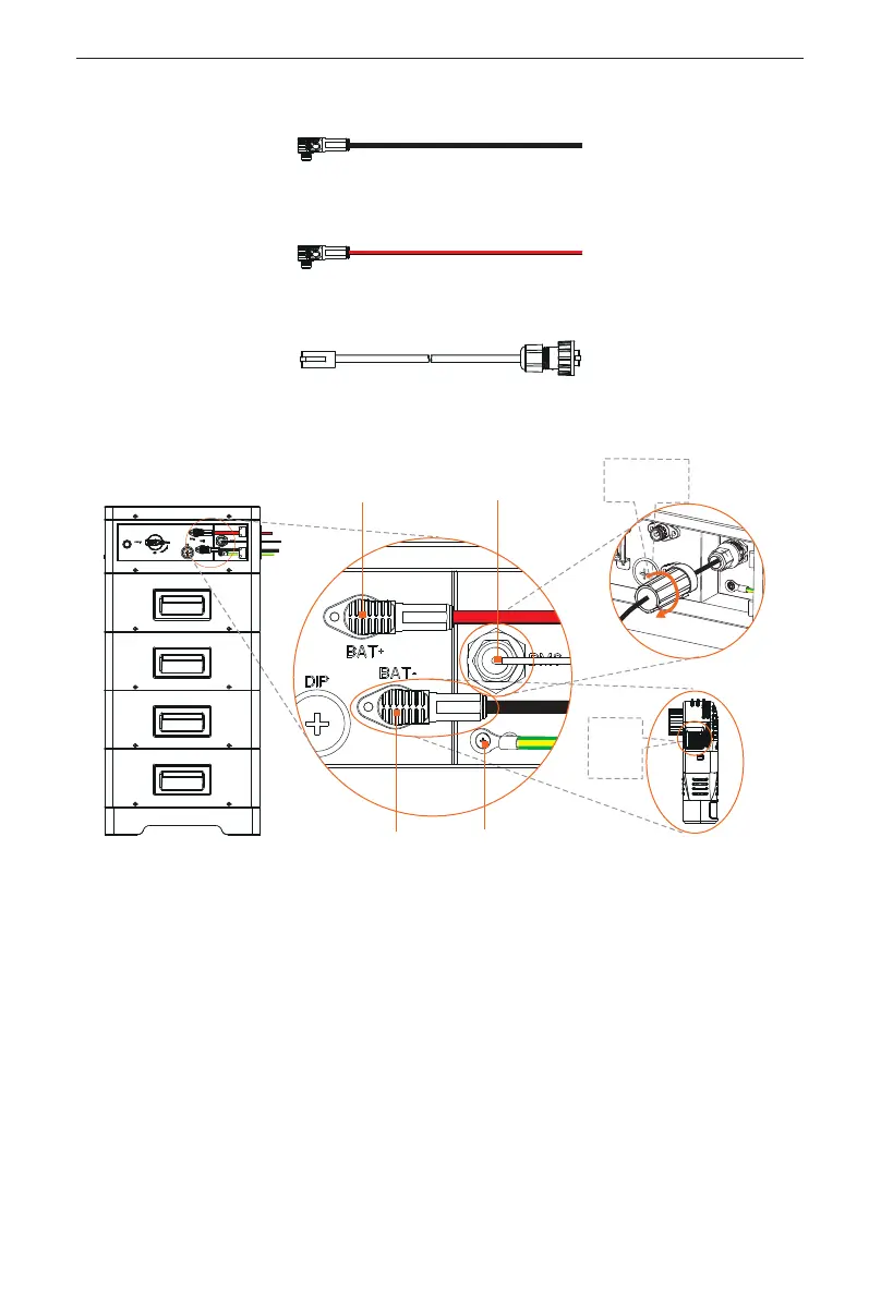 Power cable (black): Connect BAT- of BMS to BAT- of inverter