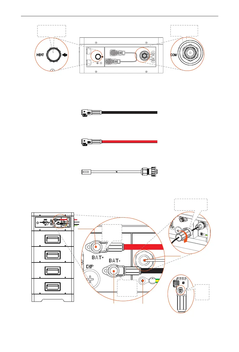 Power cable (black): Connect “BAT-” of BMS to “BAT-” of inverter