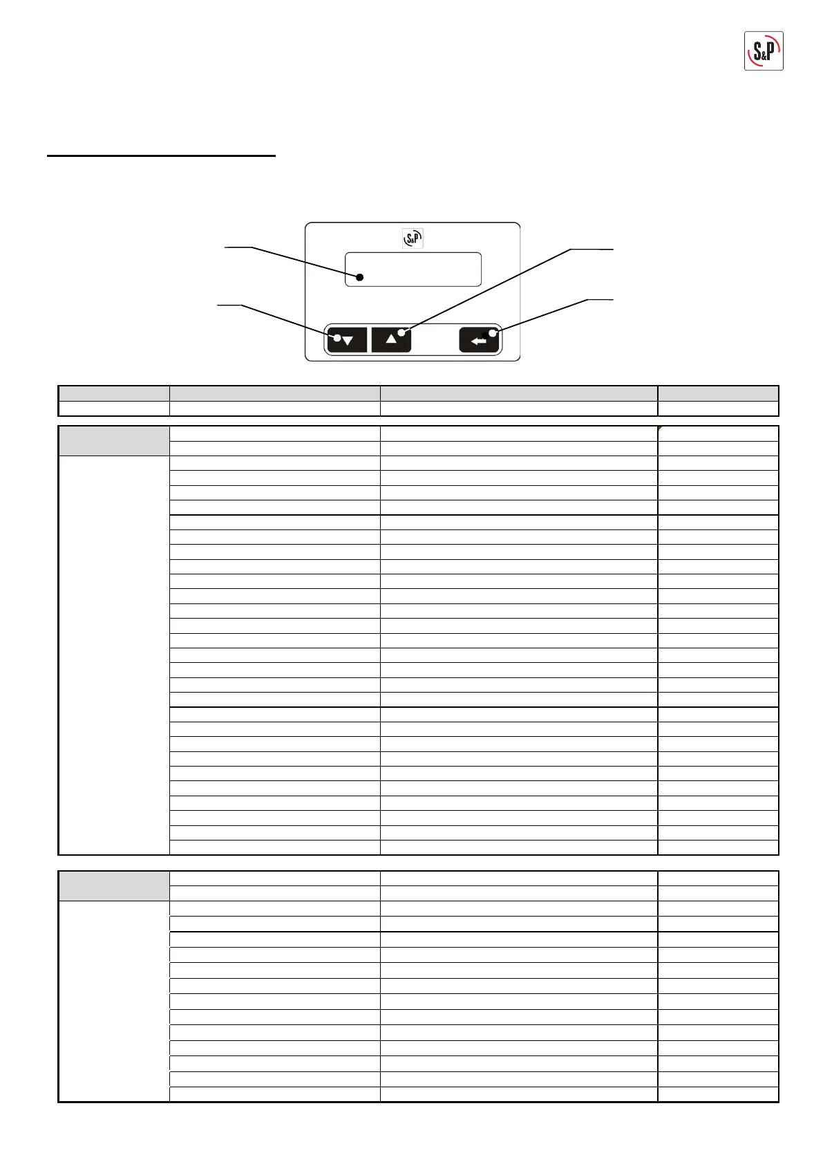 MENU OPTIONS VALUES FACTORY SETTING