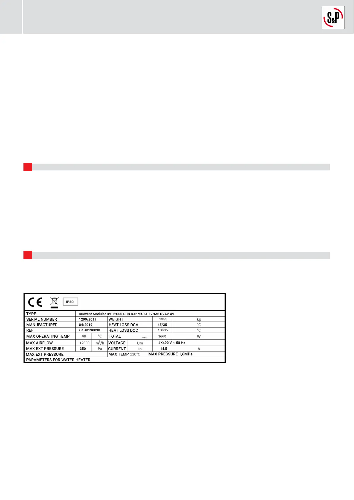 Each unit is provided with a manufacturing label, which contains the basic data needed to identify the device. The label is usually located on the