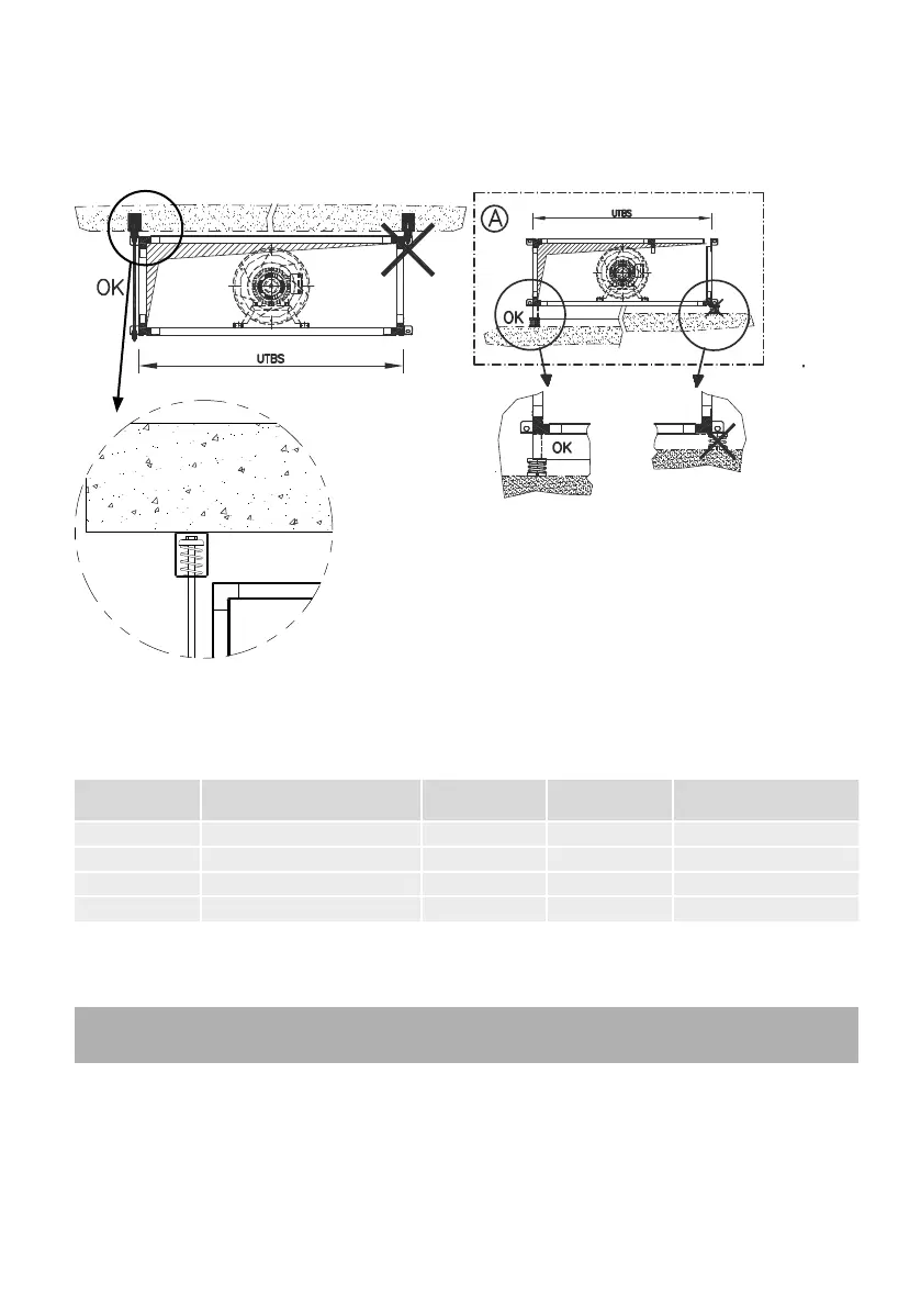 • For ceiling and floor-mounted applications, the unit must be suspended from the four