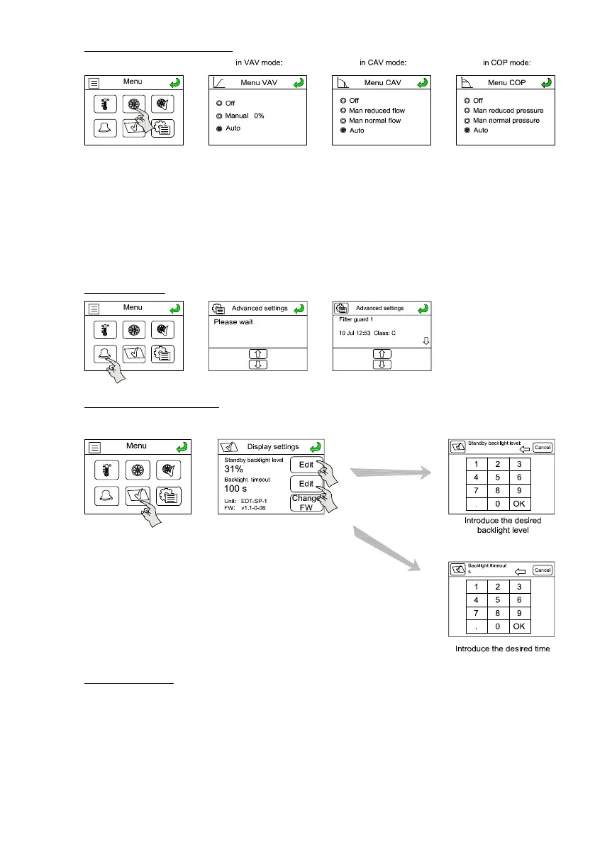 In this level is possible to adjust the operating parameters of the unit: Fan, heating,