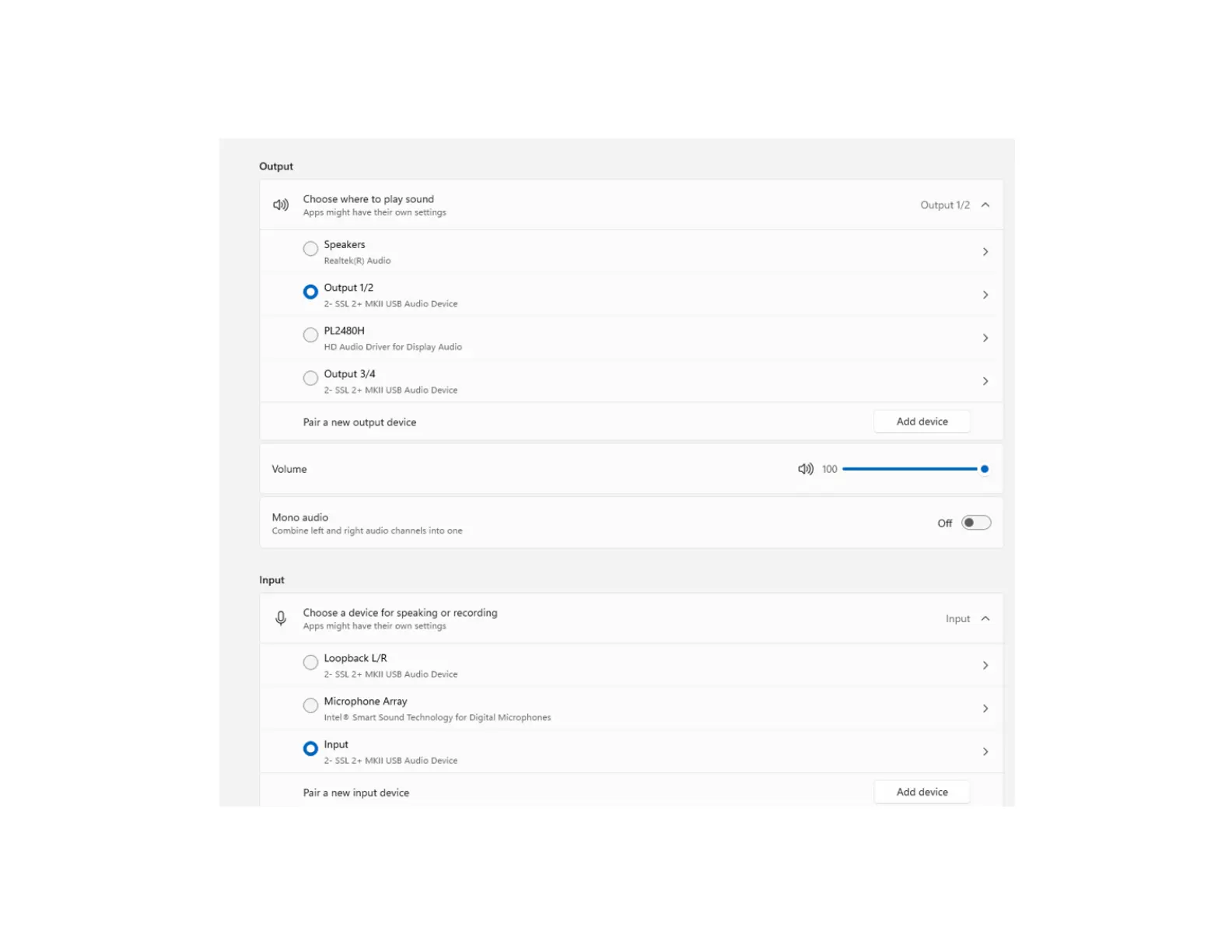 4. Go Into the SSL USB Control Panel & Select your SSL Interface & Assign the ASIO Driver (1-4)