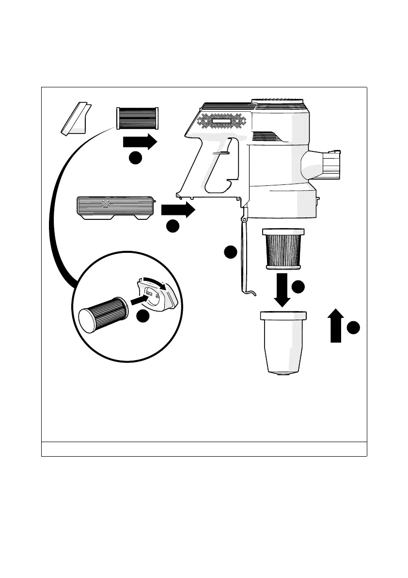 Gebruik het apparaat nooit zonder de stofbak s en lters 5+8.