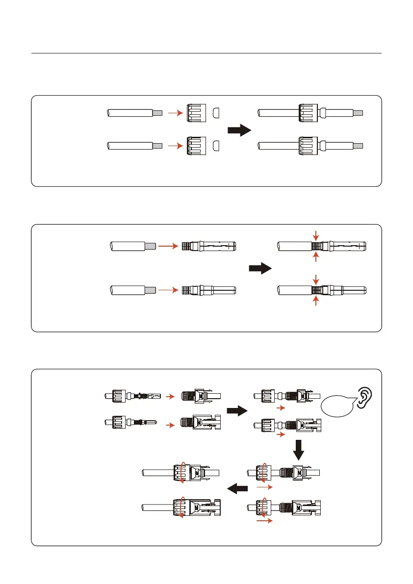 5. Insert the crimped DC cable into the DC terminal firmly, then insert the waterproof rubber