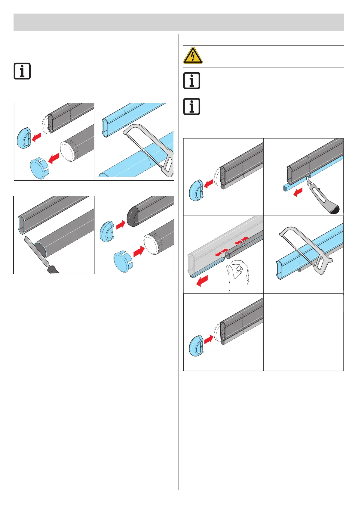 The LED boom must be de-energised before shortening it!