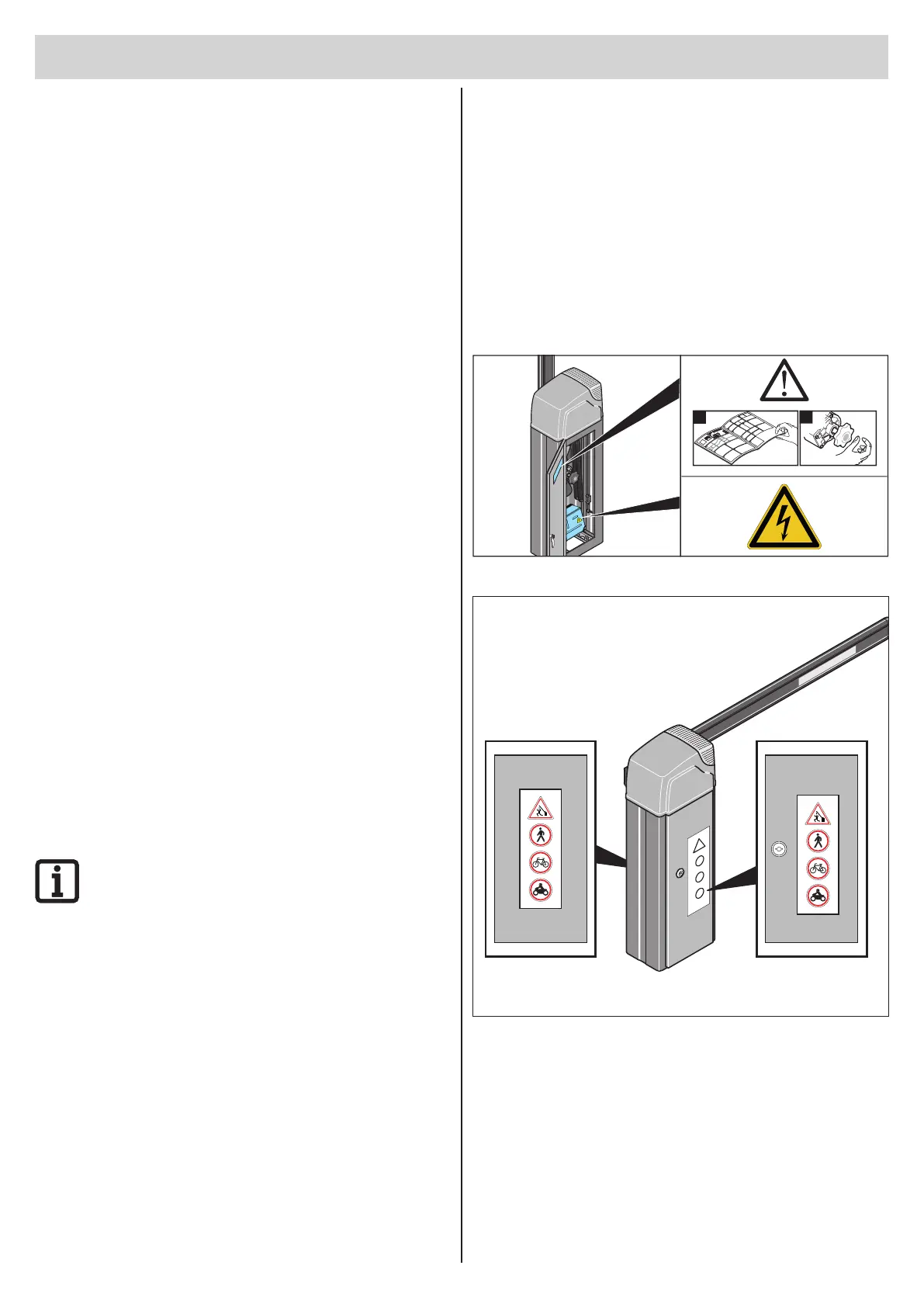 The danger zone of the barrier is labelled with a warning sign. In addition,