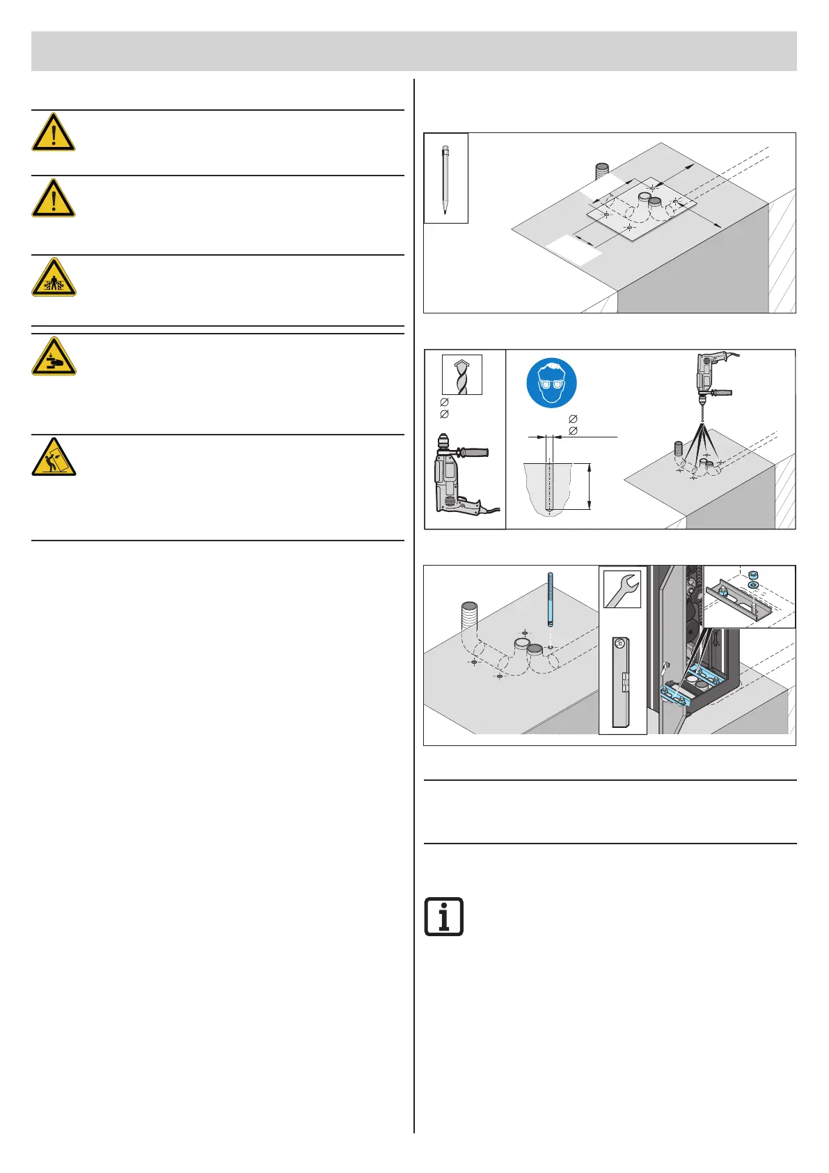 3. Drill four holes Ø 10 or Ø 12 mm and at least 65 mm deep.