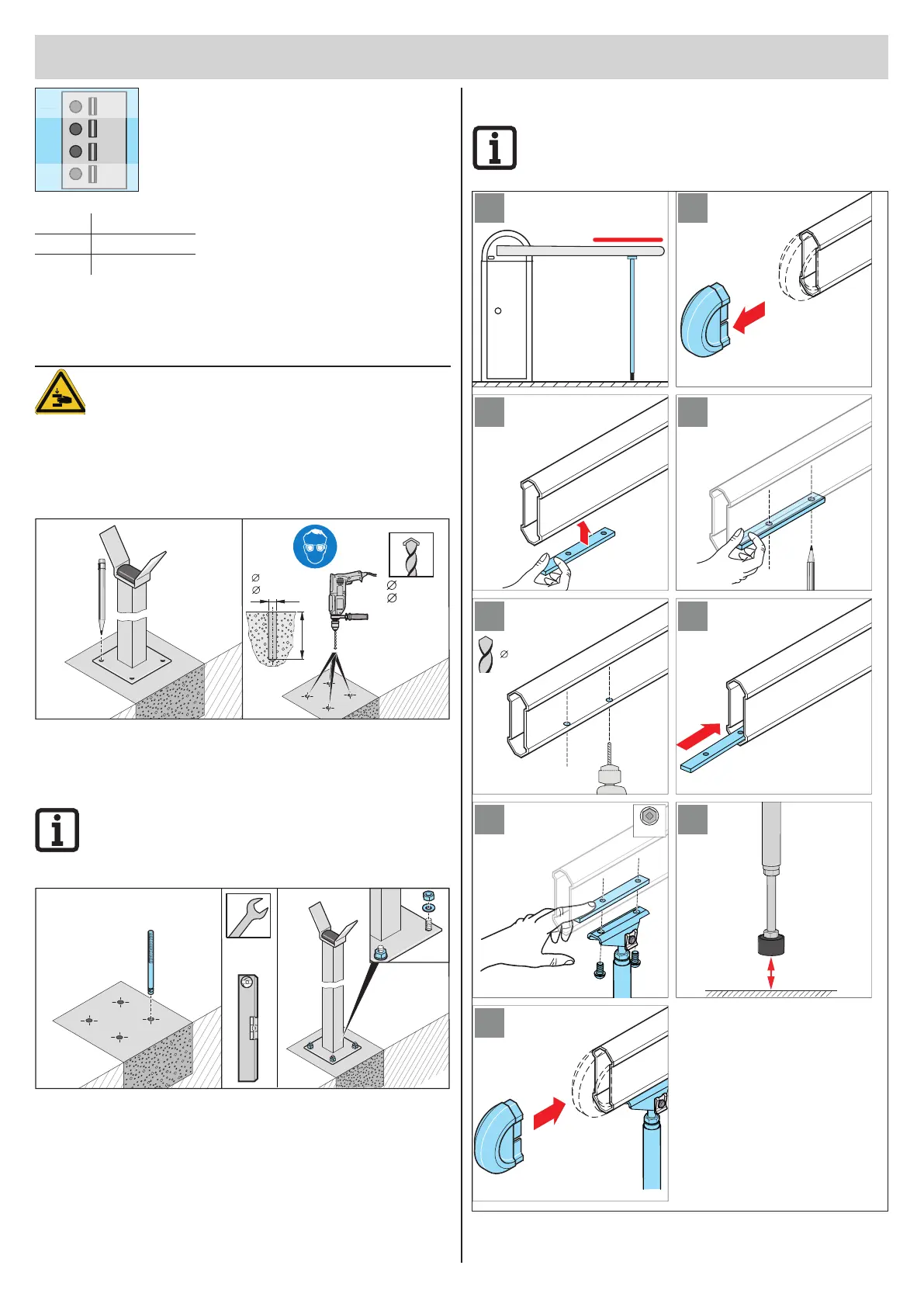 3. Drill four holes Ø 8 or Ø 10 mm and at least 65 mm deep.