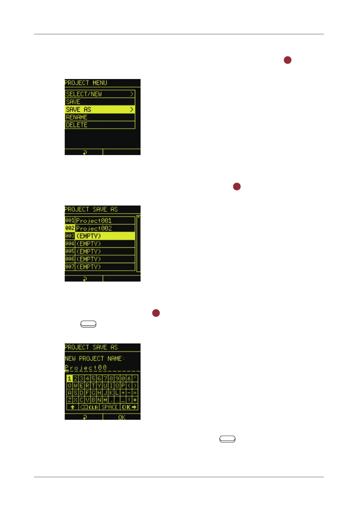 In the PROJECT MENU, select SAVE AS and press the