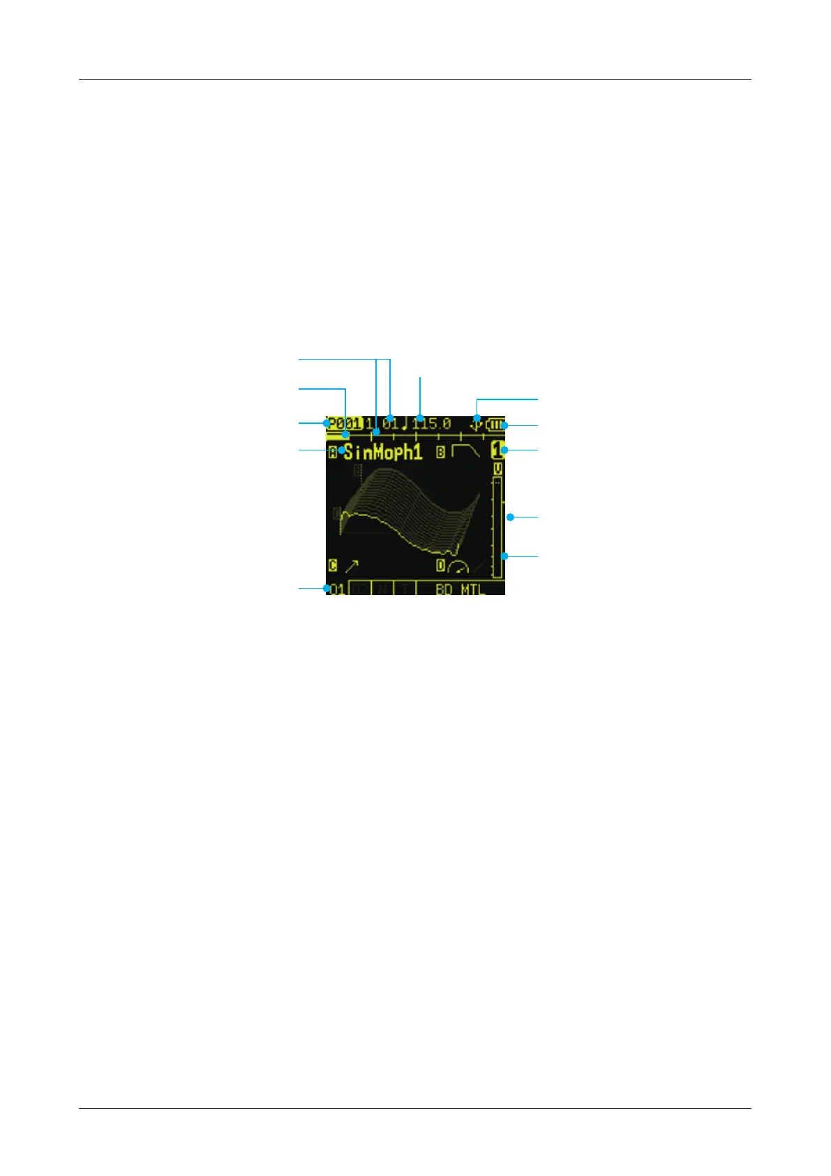 The CyDrums displays dierent items on the screen depending